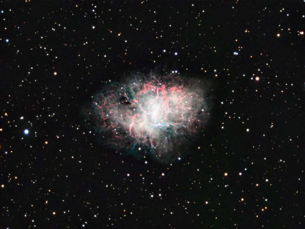 Photo réalisée en 2h30 de pose avec une lunette Esprit 100 / 555 équipée d’une caméra ASI2600 MC Pro et d’un filtre Antlia 3B.